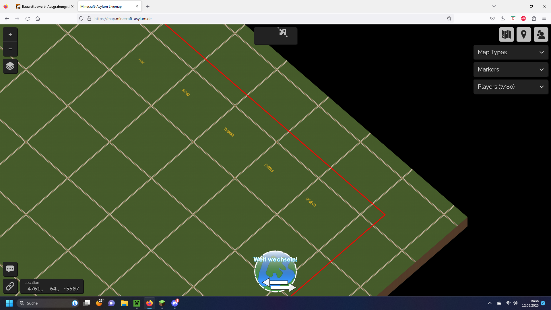 Sorry wenn es etwas gedauert hat. ich dachte, dass ich die Grundstücke selber sichern kann. Am Ende musste Anda wieder mit seiner Magie ran. Die Grundstücke sind nun auf die Teams (oder wenigstens auf einen von beiden) registriert und befinden sich in der NordOstecke der VIP Welt. Ihr müstet da im schlimmsten Fall hinfliegen und euch ein Home setzen. (Siehe Bild) Falls Anda das nicht auch berücksichtigt hat :D