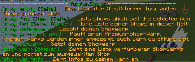 Probiert auch die vielen neuen Befehle (/shop list, /shop find, /shop empty, /shop warp, usw) aus. Eine Übersicht bietet /shop help.